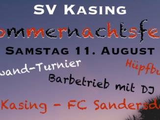 Der SV Kasing lädt recht herzlich zum Sommernachtsfest am 11. August ein.   Programm:   15:00 Uhr: Auftaktspiel B-Klasse: SV Kasing II – SpVgg Wolfsbuch/Zell II   ab 16:00 Uhr: Anmeldung zum Torwandturnier   17:00 […]