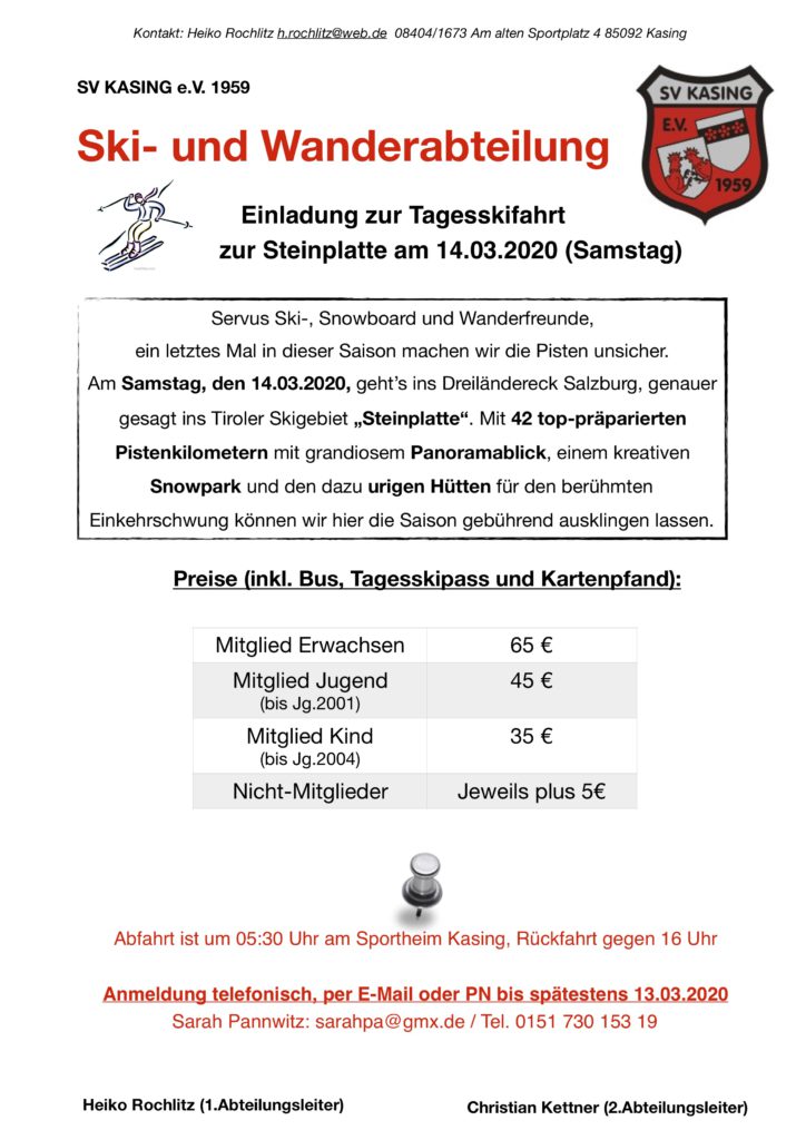 Einladung Tagesskifahrt zur Steinplatte am 14.03.2020 2. März 2020 Thomas Haas Ski & Wander Teilen mit: Auf Facebook teilen (Wird in neuem Fenster geöffnet) Facebook Auf X teilen (Wird in neuem Fenster geöffnet) X Auf WhatsApp teilen (Wird in neuem Fenster geöffnet) WhatsApp Drucken (Wird in neuem Fenster geöffnet) Drucken